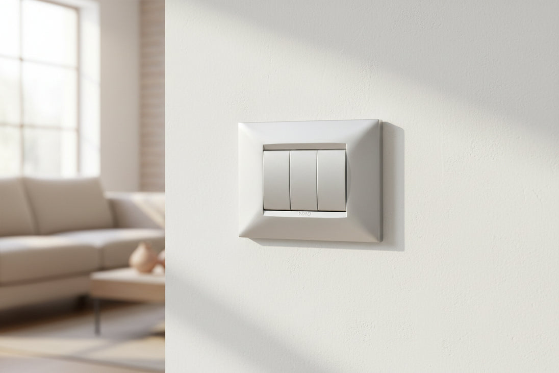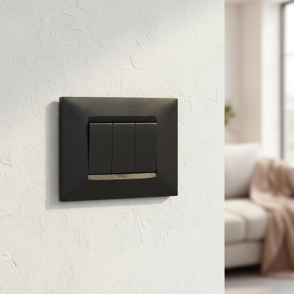 מסדרת ניסקו סוויץ’ מדגם BE בעיצוב חדשני, דק ומינימליסטי. מסגרת שטוחה וצמודה לקיר, היוצרת תחושת קו אחיד על הקיר.